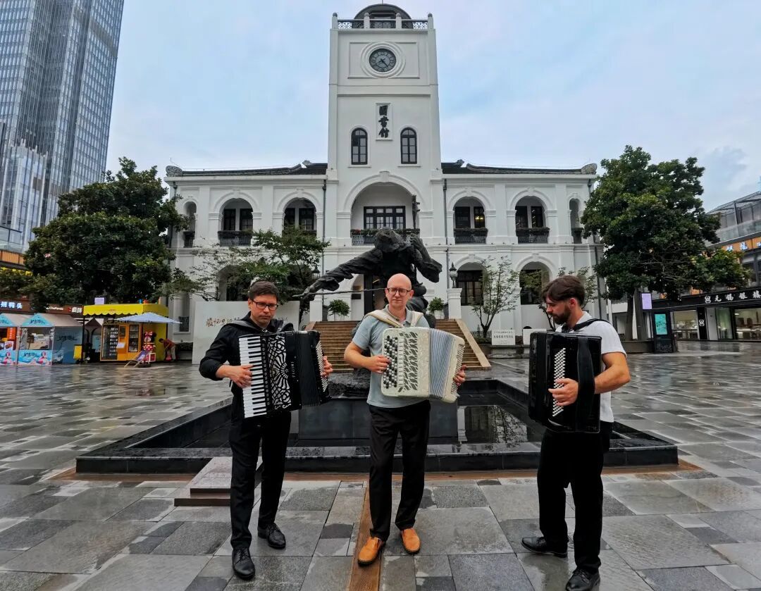 这里,成了“国际音乐大师的聚集地”。俄罗斯青年手风琴家爱德华、谢尔盖,葡萄牙手风琴家维托,意大利口琴大师Max De Aloe,波兰口琴乐团团长Marek,巴西布鲁斯演奏家Santos……